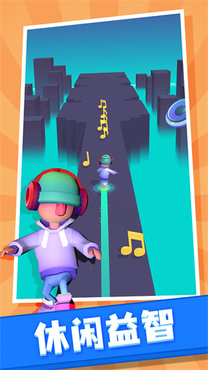 《节奏滑板》是一款休闲音游跑酷类游戏,玩家们在游戏当中不仅可以去寻找多种道具来帮助自己快速的赢得游戏的胜利,而且每一个关卡中都有一定程度的障碍,大家必须要快速的躲避才可以让自己不受到任何的伤害就闯关成功。