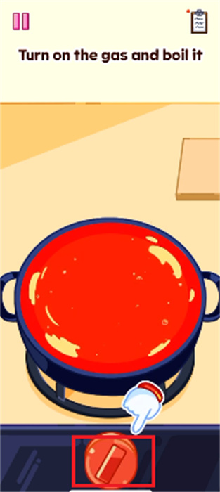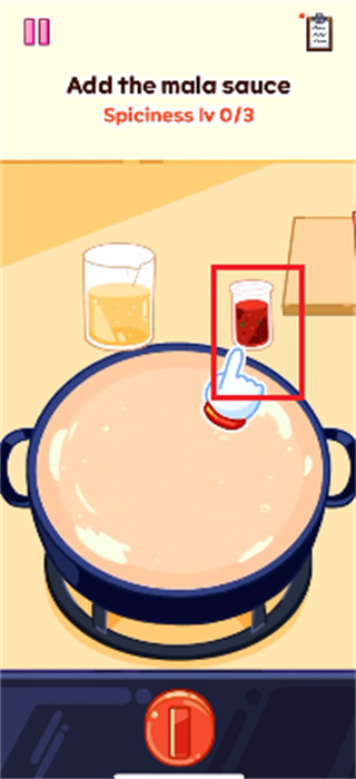 1、首先需要点击屏幕之中的麻酱,并用麻酱将锅底盖住;