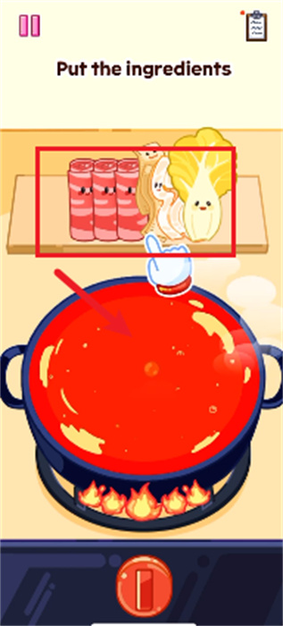 4、开启火之后,玩家将需要往锅中添加食材,直到全部的食材被放进锅中;