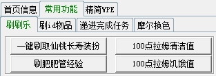 首页左下角的常用功能内可以进行各类刷经验、刷物品、摩尔换色等操作