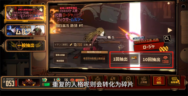 3、抽取到的重复人格会自动转换成为碎片,我们到最后面的栏目中找寻到自贩机,点击常时设置碎片可以进行兑换;