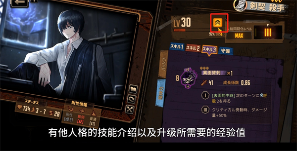 6、进入到角色详细页面中将会看到右上角的↑符号,点击就可以利用经验值票基进行升级还能升级精专等级哦。