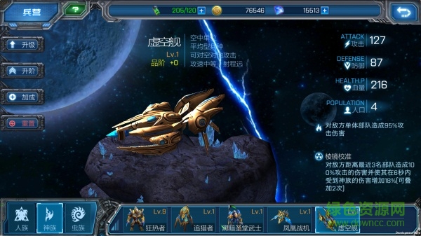 虚空舰:均衡性空中单位,拥有让友军伤害持续增加的能力。