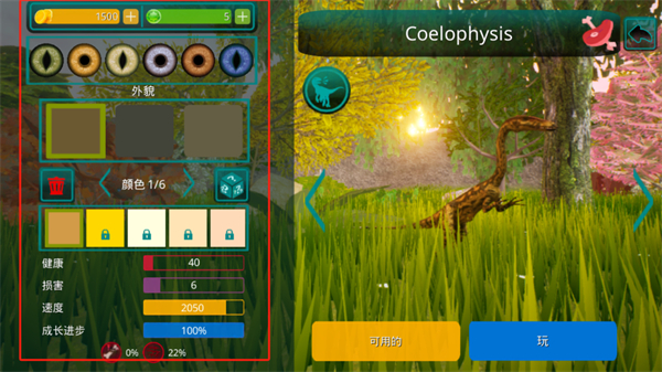 能够自由的定义自己的恐龙,如给恐龙进行样貌的更换又或者是眼睛的更换。