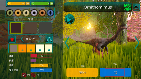 3、选择好自己的恐龙之后,玩家则需要进行选定,点击屏幕右下方的【玩】按钮以开始;