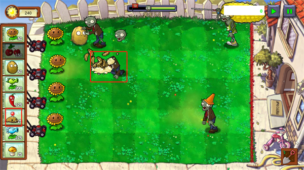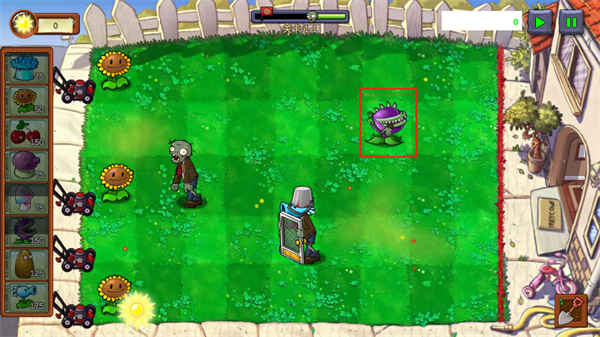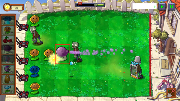 2、红框框内的植物可以实现一命换一命的效果,玩家可以用它来换僵尸的一命;