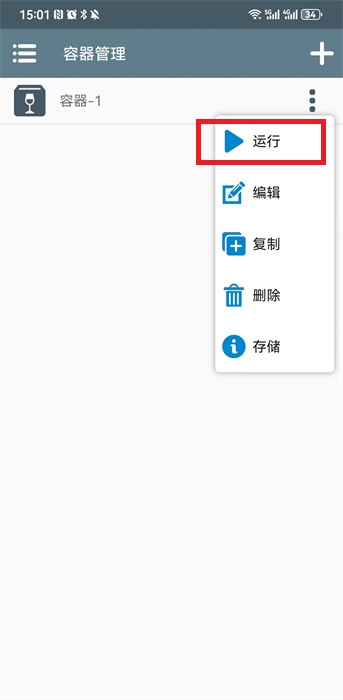 1、首先需要在本页面中下载安装包,下载的是一个windows模拟器,需要等待加载,加载完成之后就会进入到软件的界面中,在界面中点击右上角【+】去新建容器;