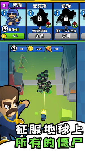 这款游戏采用了十分卡通的游戏画面效果打造,玩家们需要在这里进行冒险射击战斗,拿起你的武器对于一切的僵尸进行击杀,来突破重重的包围,目标就是将所有的僵尸来进行击败。