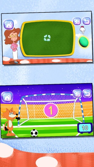 踢足球——男孩最爱的足球玩法,选出相应数字的足球数量,然后将足球踢进球门吧,提高宝宝学习的动力和主动性,寓教于乐。