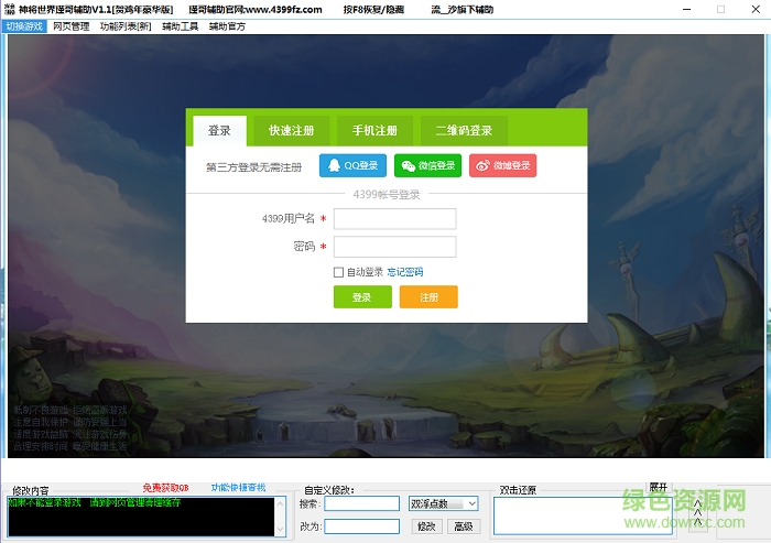 神将世界瑾哥辅助是一款专为神将世界提供的最新修改作弊器,支持自定义修改游戏数据、解除游戏限制等,更多功能来绿色资源网即可免费下载!