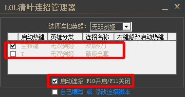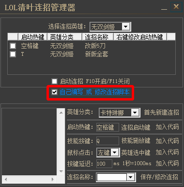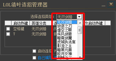 LOL清叶连招管理器是一款功能强大的英雄联盟游戏连招辅助工具,可以自由设定英雄端的技能出招顺序,让你可以一键秒杀敌人,菜鸟瞬间变大神,需要的赶快下载吧!