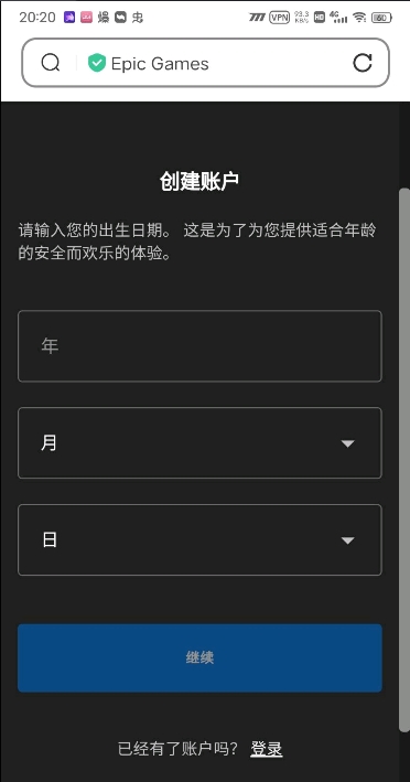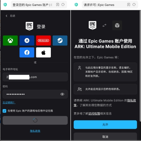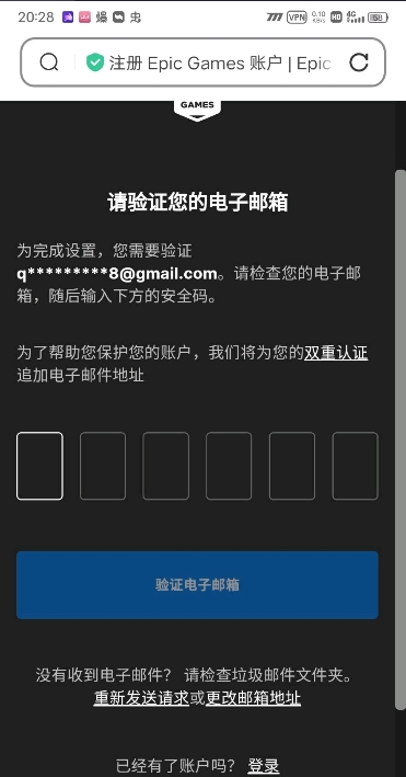 ⑥登录游戏我们点击使用epic games登录会跳转到网页,输入刚才注册的邮箱跟密码,然后游戏会给你发一个验证码到邮箱,前往邮箱输入查看,授权登录,就能玩啦!