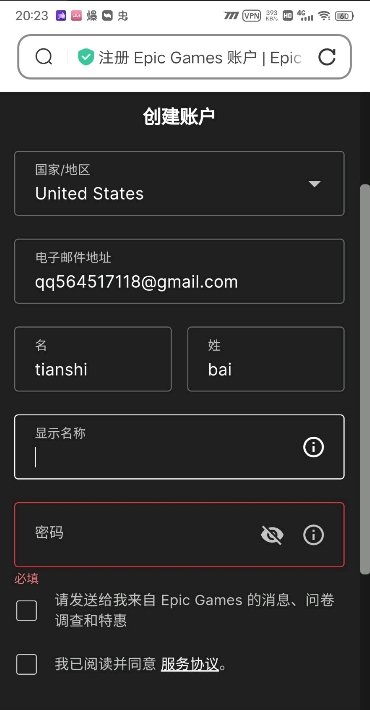 国家和地区必须选择其他国家或地区,不然完成注册后,想要登录就会提示【对不起,您使用的凭证无效】!而一旦出现您使用的凭证无效,那么这个邮箱就废了,再也无法登录Epic!你只能换一个邮箱。推荐选择美国或者日本;
