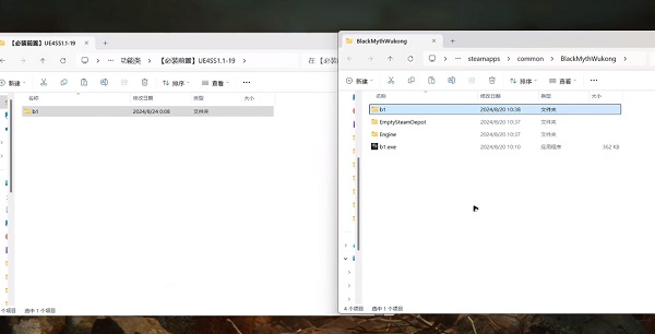 4、如果想要安装功能类的模组,就需要提前安装【UE4SS】,安装后其他的功能模组才会生效,一样把【b1】文件夹合并在黑神话悟空的根目录文件夹即可;