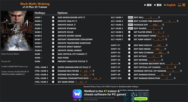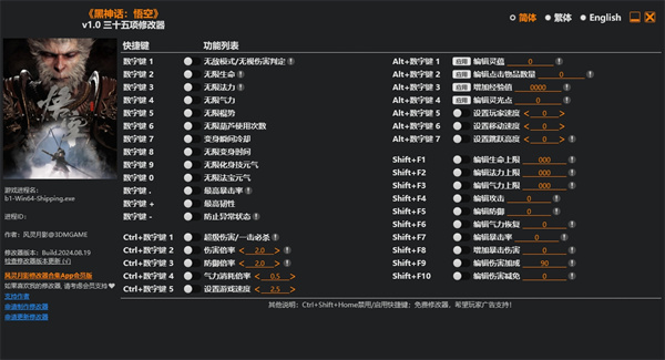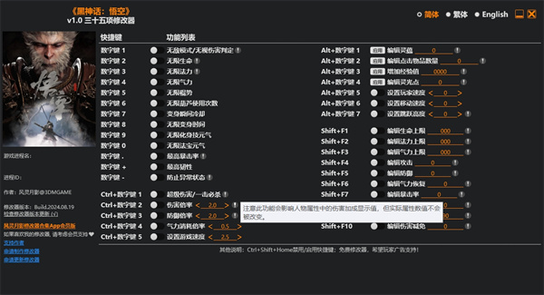 黑神话悟空v1.0三十五项修改器使用教程