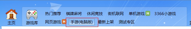 4、在应用的首页选择手游、电脑版