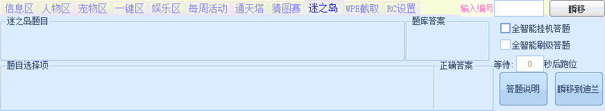 --进入迷之岛自动加载题库.自动开启自动取题.自动开启跑位功能.