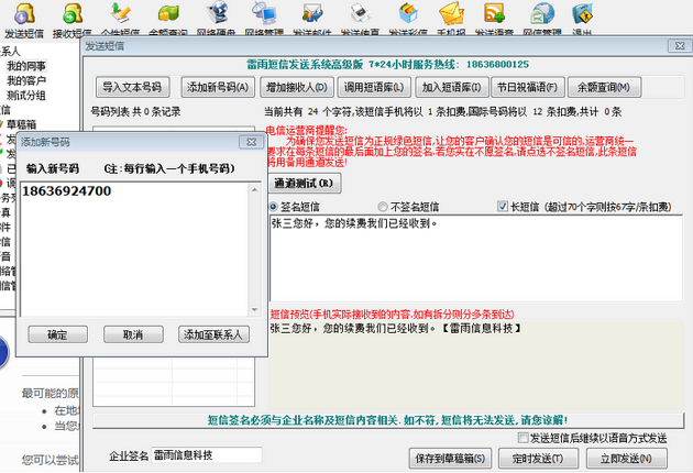 雷雨短信发送系统,正规106通道,支持二次开发,短信群发,短信营销,短信通知,短信接口,彩信群发,可以帮助你快速发短信,还可以群发短信等,有需要的赶紧来下载使用吧。