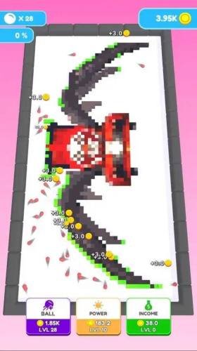 闲置砖块粉碎者是一款有趣的休闲益智游戏,游戏每一关的地图上都会有一个像素方块形成的图案,玩家需要在游戏中发射弹球,弹球撞到像素块就会将其消除,然后小球会发生反射,撞到墙壁再弹回去,就这样来回撞击消除,就可以将整个图案消除。
