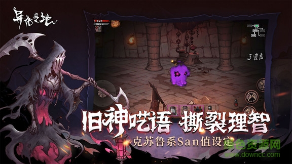 异化之地引入了克苏鲁跑团游戏中的san值(理智值)设定,每次服用疯狂之血后都会降低理智值,理智值降低将会降低攻击力、提高遇到不好情况的概率等(点击左上角标志即可查看当前状态),并且有概率出现限制视野的效果。通过服用镇静剂就可以恢复。