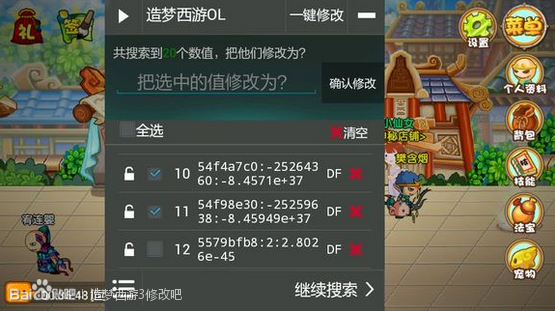 首先打开造梦西游ol修改器,进游戏直接点搜索,然后自动匹配,然后去小仙女,也就是神秘店铺(必须有几万灵魂)直接购买材料买了就打开造梦西游ol修改器搜索有变化,然后出来随便走动下在搜索无变化,在购买材料搜索有变化,在出来走动下搜索无变化。这样搜索几次。结果出现几十个数据,找到是负数的数据如图,把他们减少一个0或者2个0也行。灵魂就变成亿,还有包括材料也是变成了亿,这就是改物品的方法了。