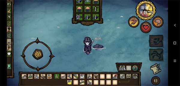 使用:将拖网挂在船后,划船以打捞食物(注意不要点击网,否则会直接脱落),打满9个物品就会自动脱落,像箱子一样,但会沉,所以要在身上空一些空格以拿装备