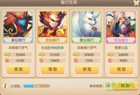 修行任务,是单人任务,不需要组队,任务经验奖励丰富,难度不高。3个任务方向供玩家选择,完成接受任务后,任务栏刷新,建议不要3个任务全部同时接受哦~可能下一个任务会刷出更高经验的任务呢~每天只有10个任务,所以我们要精巧细算起来。