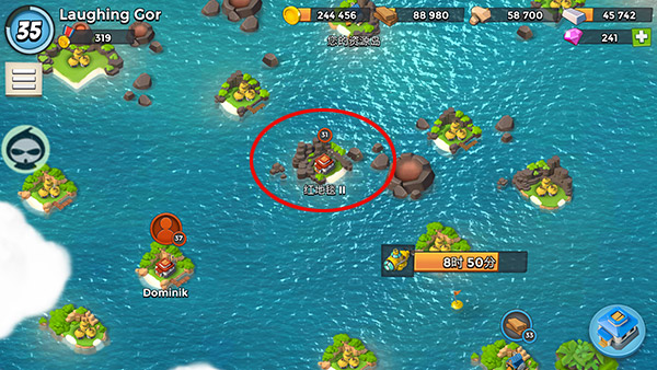 7、养成一个良好的习惯,不要直接开启模拟攻击,先在官方环境下“侦查”,观看敌对岛屿的建筑摆放(如防御设施射程等资讯)。因为开启模拟攻击后,点击“侦查”攻击会立刻开始。