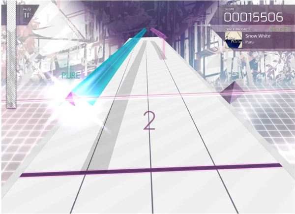 4、除了音效和操控之外,游戏的画面风格其实也很独特,虽然采用了快速和科幻风格的场景,但与音乐结合并不会显得很嘈杂。