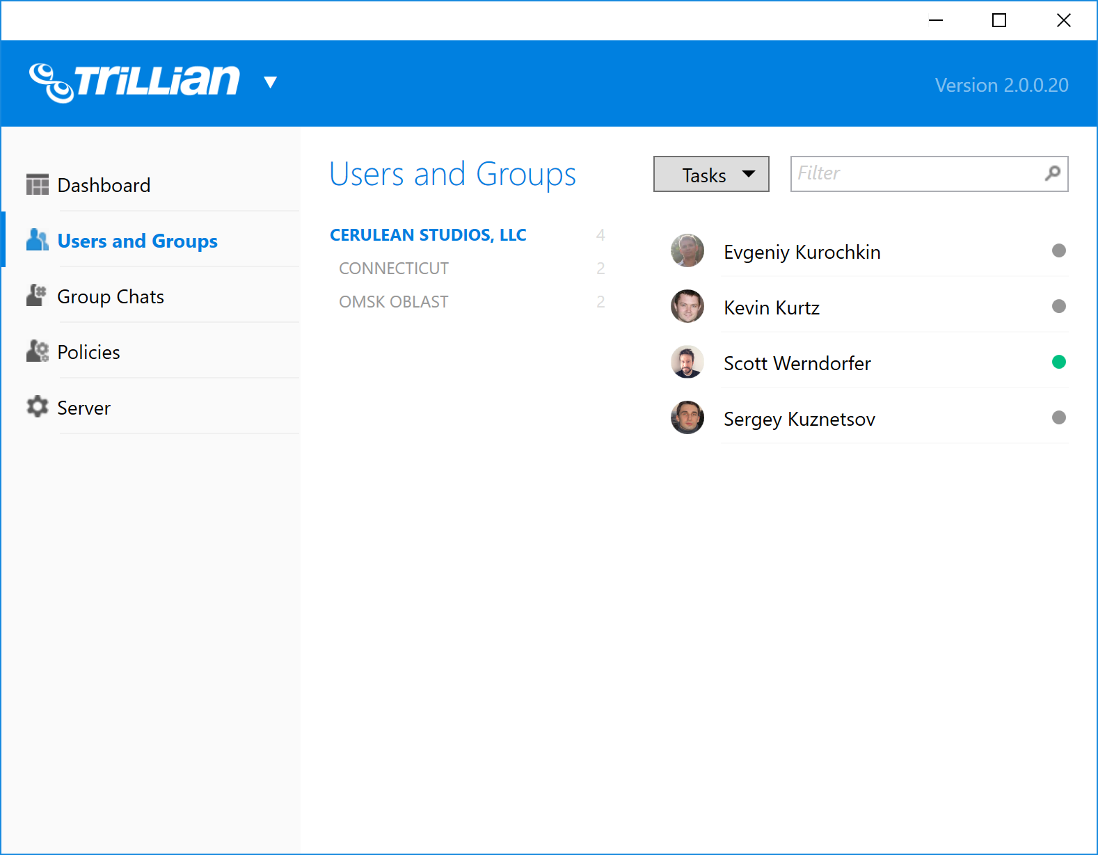 随着越来越多的客户采用我们的 Trillian Server 内部业务解决方案,我们还确保所有客户端软件都能正确连接到内部服务器。Trillian 6 为