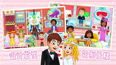 迷你小镇婚礼派对游戏中拥有举办婚礼需要的所有不同场所,蛋糕店,婚纱礼服店,鲜花礼品店,美发店,沙滩露天婚礼场景和位于第100层的一场婚礼聚会等等,本游戏的玩法和准备婚礼的方法无限,超赞场所和众多新角色,该游戏将利用趣味和创意活动以及模拟创造游戏触发每个儿童的想象力。