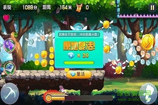 1、基本玩法就是点击屏幕右侧的按钮来控制人物向前移动并且跳过断裂的地面;