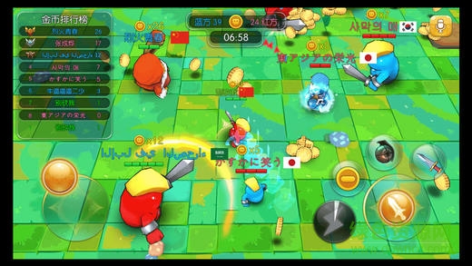 游戏规则就是砍倒敌对阵营的玩家,并吃掉敌对阵亡玩家掉落的金币增大自己的体型,当然你也要躲避敌对阵营玩家对你的攻击避免掉落金币。体型越大,战斗能力越强,但速度慢;体型越小,战斗能力较弱,但速度更快。