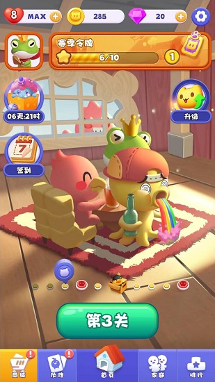 《快乐连连消》是一款卡通动物拟人风格的3d连线消除游戏,讲述的是一群无忧无虑生活在森林中的小动物被突如其来的球球星星抓走,作为唯一的”幸存者“青蛙-泡椒踏上了解救伙伴的冒险。