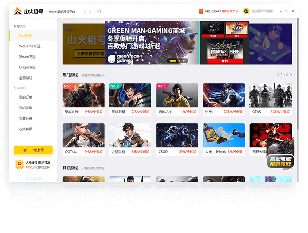 火山租号给喜欢玩游戏的朋友带来非常方便的账号租赁软件,简单的操作不仅这次会各种热门游戏还有安全方便的账号交易以及贴心的客服等等,强大的账号保护加上各种活动福利低价租号等你来体验。喜欢的朋友赶紧来下载吧!