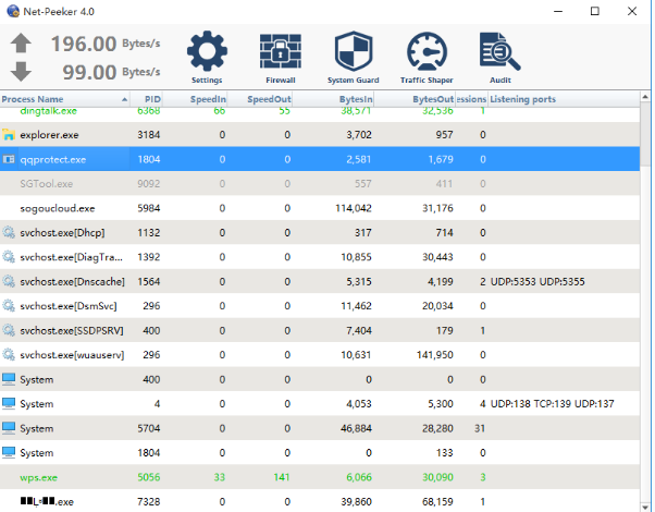 支持对整台计算机的软件监控,只要你启动软件就可以在NetPeeker破解版查看速度