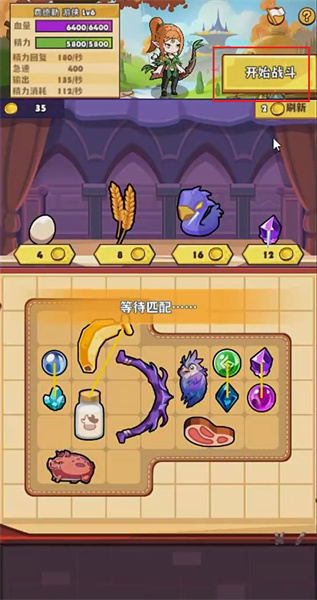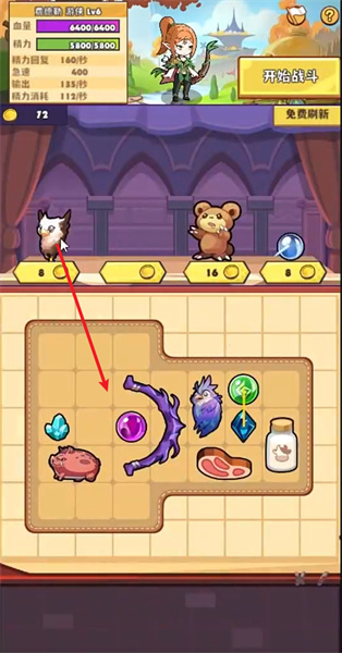 4、当所有的物品都选择完毕之后,玩家将需要进行物品的排列,排列好之后,将可以开启战斗;