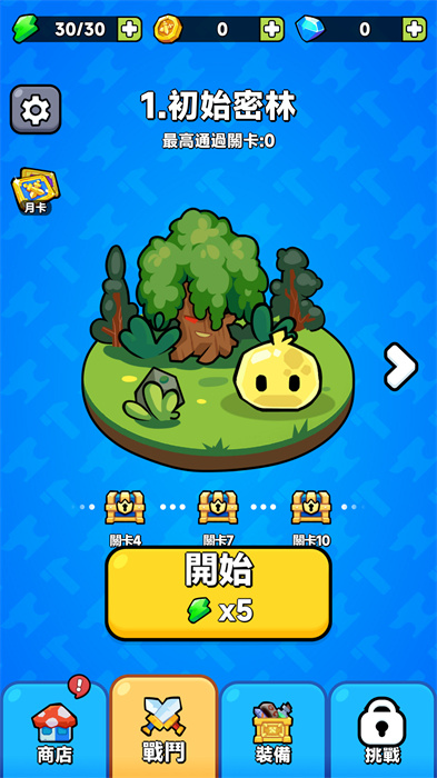 1、下载安装完成游戏之后,就可以打开游戏,然后进入到游戏界面之中,无需登录,直接就可以开始玩,在游戏界面点击【开始】就可以挑战;