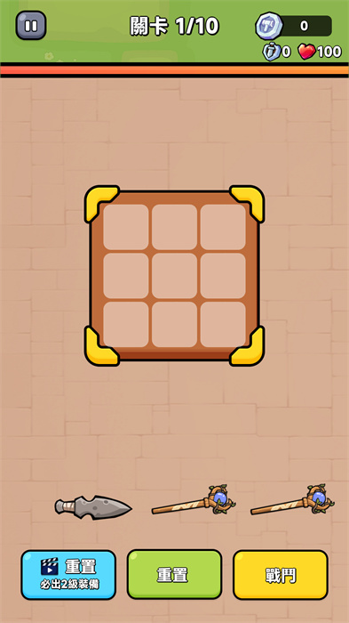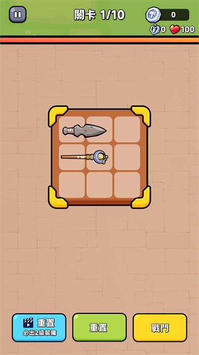2、在开始战斗之前,你需要把武器放在背包中,需要合理的放置,才能放下更多的装备;