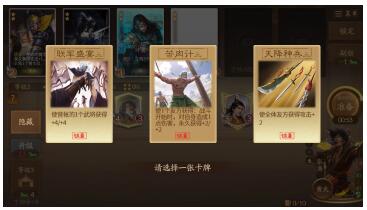 在进行营帐升级的时候,玩家将需要在锦囊牌之中进行手牌的选择,不同的锦囊牌将会有不同的应对效果。