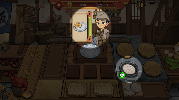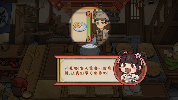 3、根据客人们的需要制作料理,第一份需要制作一张烧饼;