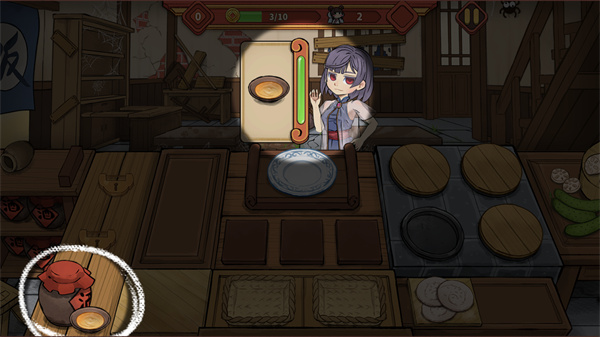 5、第一位顾客需要一碗酒,根据提示将酒倒入她的碗中。