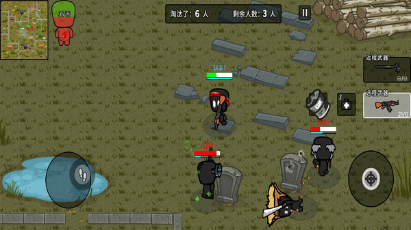 3、使用虚拟按键来进行移动和射击,随时随地都能上线参与其中。