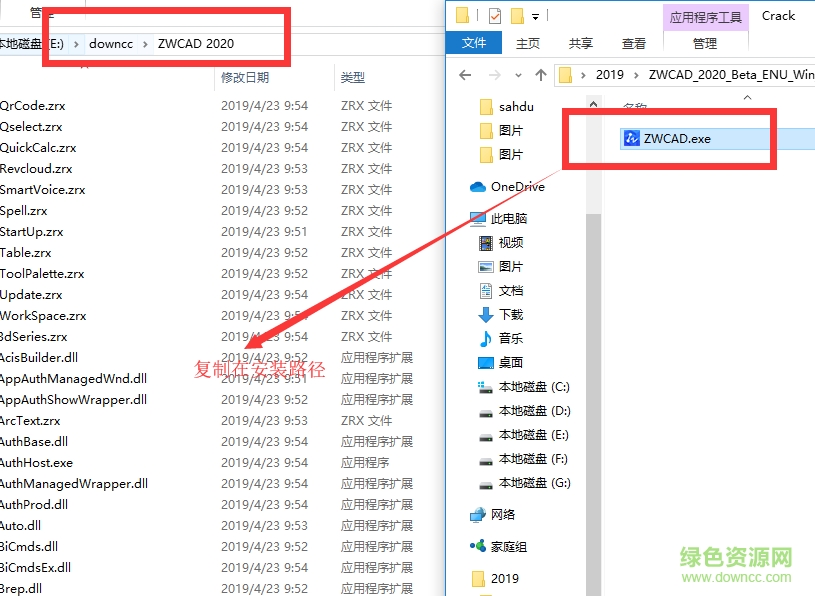5.打开安装根目录,然后把ZWCAD.exe 复制进去直接替换