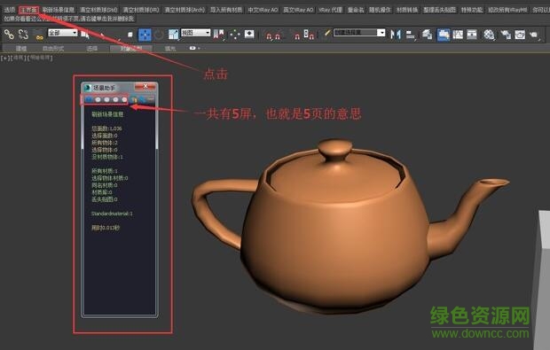 1.物体数量:统计数据包括物体总个数,选择物体个数,没上材质物体个数。