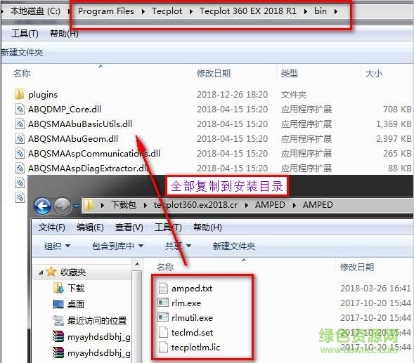 8.解压AMPED文件夹,将里面的所有文件复制到安装目录C:\Program Files\Tecplot\Tecplot 360 EX 2018 R1\bin,提示覆盖全部选择是;