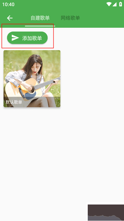 2、可以点击"我的歌单"右上角的小加号创建歌单。