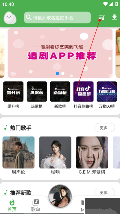 1、在主界面上方输入想听的歌曲名,即可完成搜索。