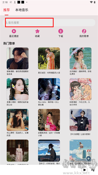 2、首页有很多非常不错的音乐歌单推荐,大家想听什么音乐可以直接在软件中搜索。
