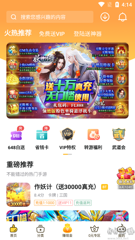 0氪手游平台是一款专为手游玩家们设计打造的游戏充值下载神器。0氪手游提供海量精品游戏资源下载,同时下载登录就能免费领游戏首充,648充值卡以及百元红包,且每日还有30元游戏基金,让你不用花一分钱,轻松享受游戏充值乐趣。有了0氪手游,精品游戏0元畅玩!感兴趣的朋友不要错过,KK下载站推荐大家下载体验!